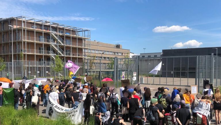Hunderte demonstrierten in Basel und Weil gegen die GEAS-Reform. Das neue EU-Asylrecht erzwingt Grenzverfahren unter haftähnlichen Bedingungen. Aktivisten kritisieren die Entrechtung Geflüchteter und solidarisierten sich beim Marsch mit Hungerstreikenden im Abschiebegefängnis Bässlergut.